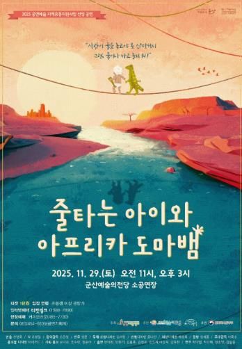 [참좋은뉴스= 기자] 예술경영센터가 주최하고 군산시가 주관하는 전통 연희극 ‘줄 타는 아이와 아프리카 도마뱀’이 오는 29일 오전 11시와 오후 3시에 군산예술의전당 소공연장에서 선보인다.