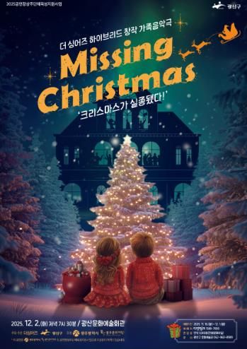 [참좋은뉴스= 기자] 광주 광산구가 12월 2일 광산문화예술회관에서 천원문화마실 제8편 창작가족음악극 ‘Missing Christmas-크리스마스가 실종됐다!’를 선보인다.