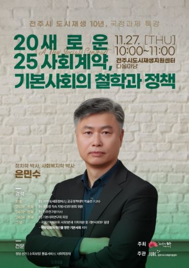 [참좋은뉴스= 기자] 현 정부의 국정 방향인 기본사회를 주제로 도시의 사회제도와 정책 방향이 나아갈 모색하는 특별한 강연이 전주에서 열린다.
