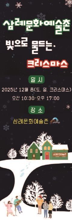 행사 기간 동안 크리스마스 분위기를 살린 대형 트리와 야간 경관조명, 포토존이 조성돼 삼례문화예술촌을 빛의 문화공간으로 연출하며, 방문객들에게 겨울밤의 특별한 문화 경험을 선사할 예정이다.