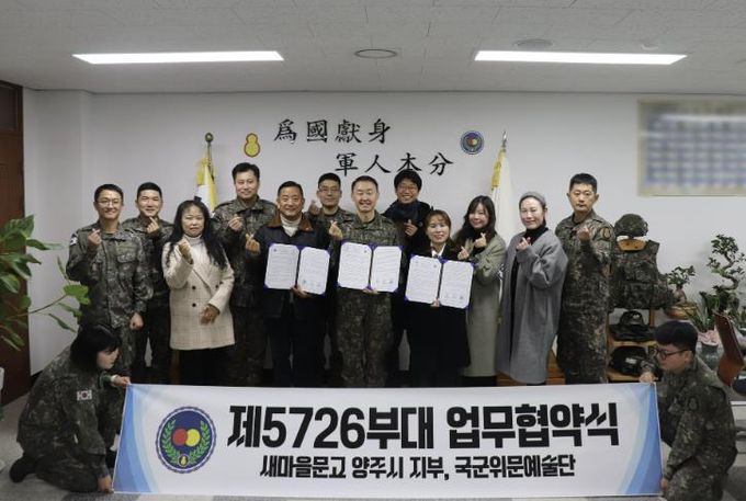 [참좋은뉴스= 기자] 새마을문고 양주시지부는 지난 12월 19일, 육군 제5726부대에서 군 장병들의 독서문화 확산과 인문학적 소양 증진을 위한 업무협약(MOU)을 체결했다고 밝혔다.