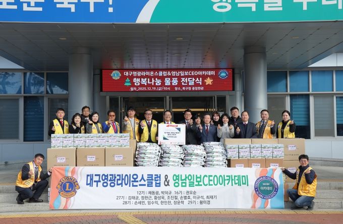 한편, 이번에 전달된 후원 물품은 북구청을 통해 관내 노인복지관과 종합복지관에 전달될 예정이며, 대구영광라이온스클럽과 영남일보 CEO아카데미는 향후에도 지역사회를 위한 봉사 및 후원 활동을 이어갈 예정이다.