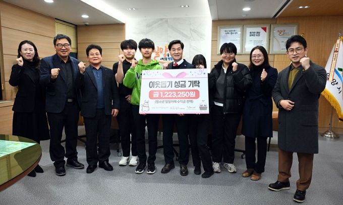 [참좋은뉴스= 기자] 밀양시는 지난 22일 청소년문화의집 소속 청소년들이 시장실을 방문해 직접 운영한 일일카페 수익금 122만 3,250원을 연말 이웃돕기 성금으로 기부했다고 밝혔다.
