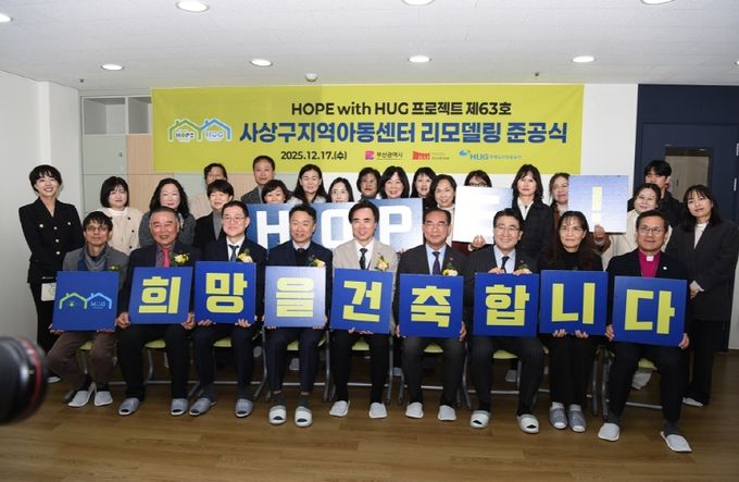 [참좋은뉴스= 기자] 부산 사상구는 지난 17일, 부산광역시·부산국제건축제조직위원회·주택도시보증공사(HUG)가 공동 주관하는 2025년 ‘HOPE with HUG’ 프로젝트에 선정된 사상구지역아동센터의 노후 시설 리모델링 공사를 완료하고 준공식을 개최했다고 밝혔다.