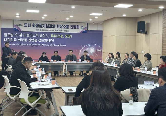 [참좋은뉴스= 기자] 충북도는 23일 충북화장품임상연구지원센터에서 도내 화장품산업 경쟁력 강화를 위해 도내 화장품기업 관계자들과 현장소통 간담회를 개최하고 ‘2026 오송화장품․뷰티산업엑스포’의 내실 있는 개최와 기업 현장의 건의 및 애로사항을 폭넓게 청취했다.