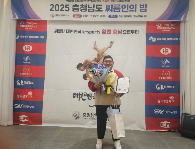 [참좋은뉴스= 기자] 지난 23일 충남 당진시 A웨딩홀에서 열린 '2025년 충남 씨름인의 밤' 행사에서 청양초등학교 김민규(38) 씨름 감독이 충남교육감 표창을 수상하며 큰 주목을 받았다.