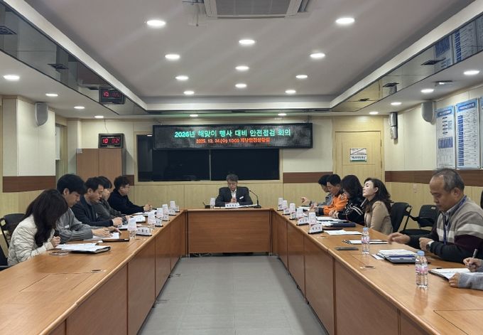 [참좋은뉴스= 기자] 광양시는 지난 24일 재난안전상황실에서 해맞이 행사를 개최하는 8개 읍면동과 광양경찰서, 광양소방서 관계자가 참석한 가운데 2026년 해맞이 행사 대비 안전점검 회의를 개최했다.