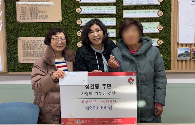 경주시에 따르면 어르신은 이날 품속에 소중히 간직해 온 하얀 봉투를 조심스레 내밀었다. 봉투 안에는 30만 원의 성금이 담겨 있었다.