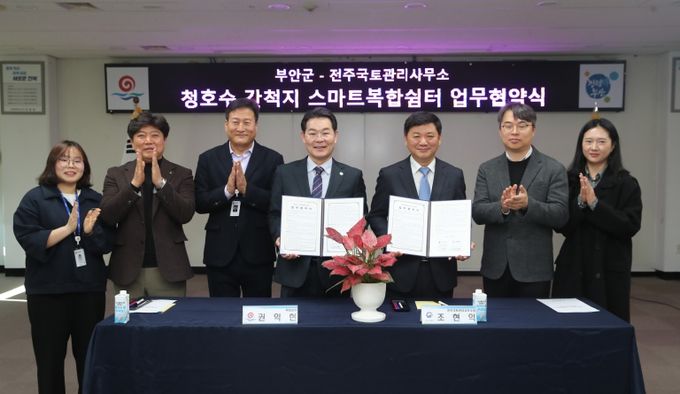 [참좋은뉴스= 기자] 부안군은 익산지방국토관리청 전주국토관리사무소와 부안 청호수 간척지 스마트복합쉼터 조성사업의 원활한 추진을 위한 업무협약(MOU)을 체결했다고 밝혔다.