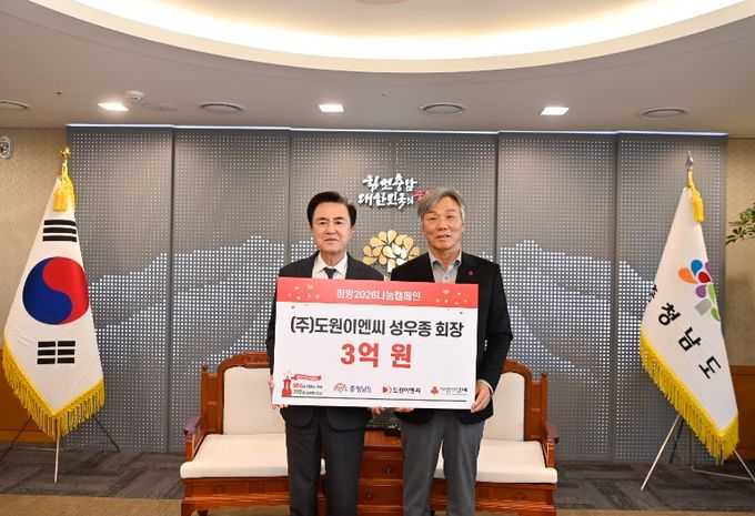 [참좋은뉴스= 기자] 충남도는 31일 ㈜도원이엔씨로부터 이웃사랑 성금 3억원을 전달받았다고 밝혔다.