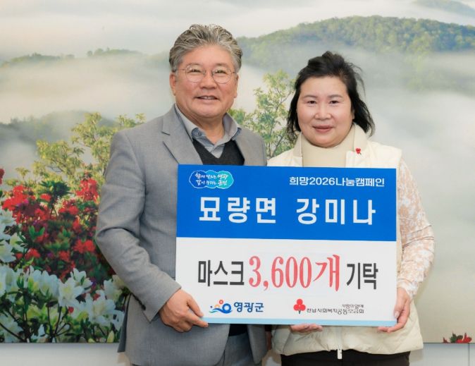 [참좋은뉴스= 기자] 영광군은 2025년 12월 30일 묘량면에 거주하는 강미나 씨가 어려운 이웃들에게 전달해달라며 마스크 3,600개를 기탁해 희망2026나눔캠페인에 동참했다고 밝혔다.