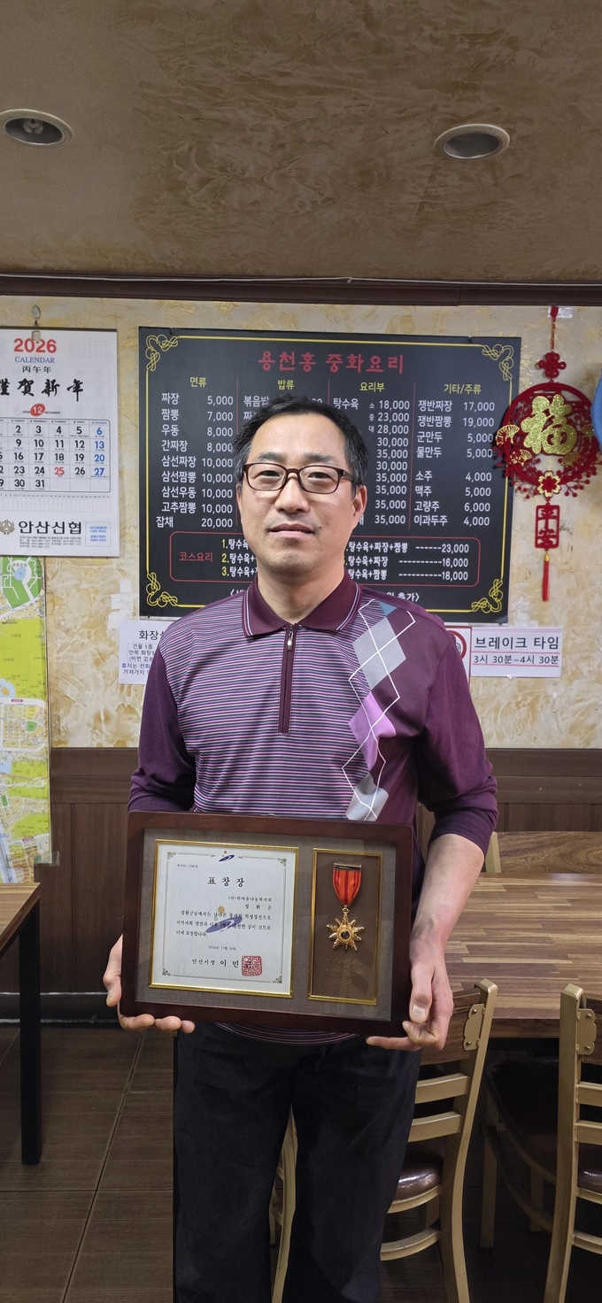 이곳의 정환군 대표는 지난 11월 29일 사단법인 한마음나눔복지회(이사장 김용호, 회장 이영근) 총회에서 지역 사회 봉사 공로를 인정받아 이민근 안산시장 표창 수여 대상자로 선정됐다. 하지만 행사 당일 매장 운영으로 인해 시상식에 참석하지 못했고, 이에 이영근 회장이 직접 매장을 방문해 표창을 전달했다.