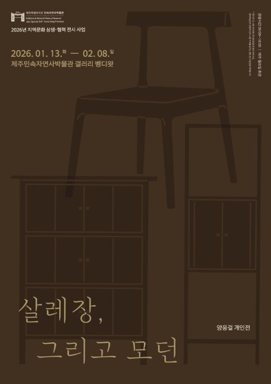 [참좋은뉴스= 기자] 제주민속자연사박물관은 ‘지역문화 상생·협력 전시 사업’의 일환으로 1월 13일부터 2월 8일까지 갤러리 벵디왓에서 양웅걸 개인전 '살레장, 그리고 모던'을 개최한다.