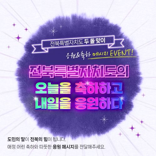 [참좋은뉴스= 기자] 전북특별자치도는 출범 2주년을 맞아 도민이 직접 참여하는 '도민 참여 축하·응원 메시지 이벤트'를 1월 12일부터 23일까지 운영한다.