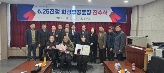 [참좋은뉴스= 기자] 울산 울주군이 12일 울주군 보훈회관에서 6.25참전유공자 고(故) 이영숙 병장의 동생 이한웅씨에게 화랑무공훈장을 전수했다.
