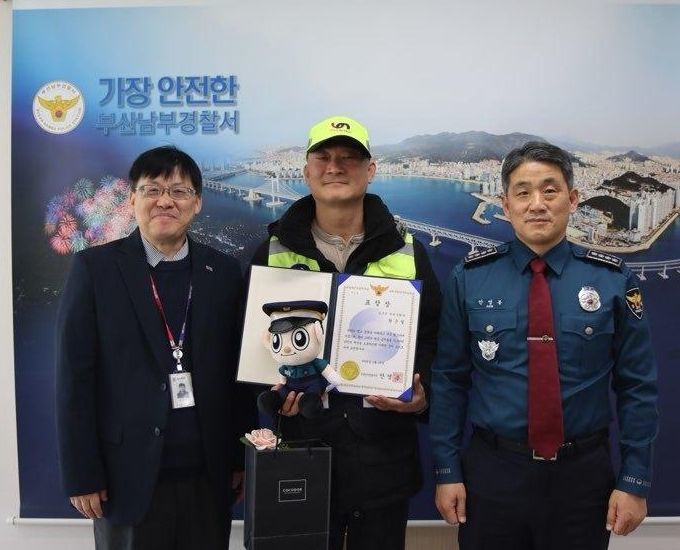 [참좋은뉴스= 기자] 부산 남구는 소속 환경관리원이 현금이 든 가방을 습득한 뒤 즉시 경찰에 신고해 분실자에게 무사히 돌려준 공로로, 지난 1월 13일 부산남부경찰서로부터 감사장을 수여받았다고 밝혔다.