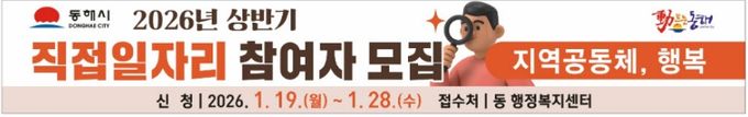 [참좋은뉴스= 기자] 동해시는 취업 취약계층의 생계 안정을 돕고 지역경제에 활력을 불어넣기 위해 오는 19일부터 2026년 상반기 직접일자리사업 참여자 모집을 시작한다.