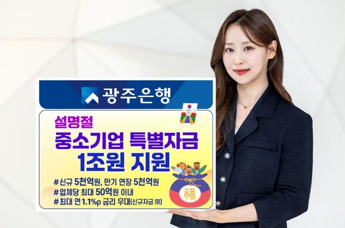 [참좋은뉴스= 기자] 광주은행은 설 명절을 앞두고 자금 운용에 어려움을 겪는 지역 중소기업 및 소상공인을 위해, 1월 15일부터 2월 27일까지 총 1조 원 규모의 ‘2026년 설 명절 중소기업 특별자금’을 지원한다고 밝혔다.