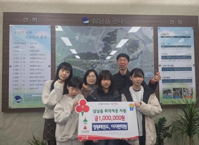 [참좋은뉴스= 기자] 울주군 삼남읍에 소재한 청원태권도와 이지펀학원이 16일 삼남읍 행정복지센터에 지역 저소득층을 위한 성금 100만원을 기탁했다.