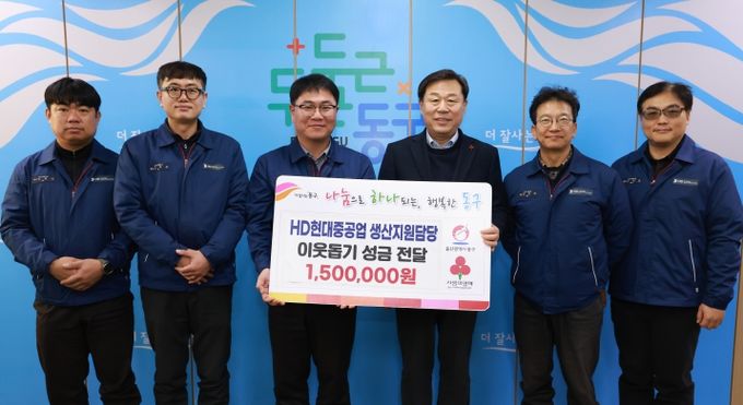 [참좋은뉴스= 기자] HD현대중공업 생산지원담당(부서장 박필용 수석)은 1월 16일 오전 10시 동구청을 방문해 이웃돕기 성금 150만 원을 전달했다.