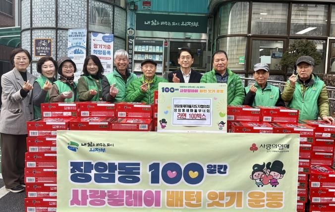 [참좋은뉴스= 기자] 의정부시 장암동주민센터는 1월 15일 장암동 새마을지도자협의회·새마을부녀회가 겨울철 어려운 이웃들을 위해 라면 100상자를 전달하며 ‘100일간 사랑릴레이 배턴 잇기’에 동참했다고 밝혔다.