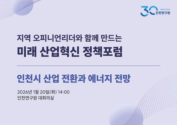 인천연구원은 이번 제1차 포럼을 시작으로, 2026년 한 해 동안 산업 전환, 전략산업, 에너지, 지역 간 산업 구조 등 주요 정책 의제를 순차적으로 다루는 정례 포럼을 운영할 계획이다.