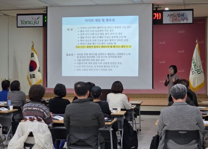 [참좋은뉴스= 기자] 양주시가 지난 16일 농업기술센터 내 교육장에서 도시농업 활성화와 전문 인력 양성을 위한 ‘도시텃밭전문가 교육’을 개최했다.