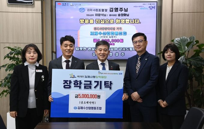 [참좋은뉴스= 기자] 김제사랑장학재단은 19일 김제수산업협동조합(조합장 김영주)과 새만금장례식장(대표 김덕운)이 지역 인재 육성을 위한 장학금으로 각각 500만 원과 300만 원을 기탁했다고 밝혔다.