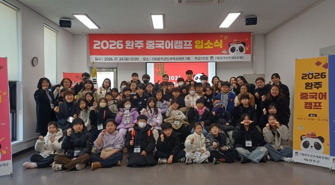 [참좋은뉴스= 기자] (재)완주군인재육성재단이 지난 24일 완주군인재개발관에서에서 ‘원어민과 함께하는 중국어 캠프’ 입소식을 열었다.