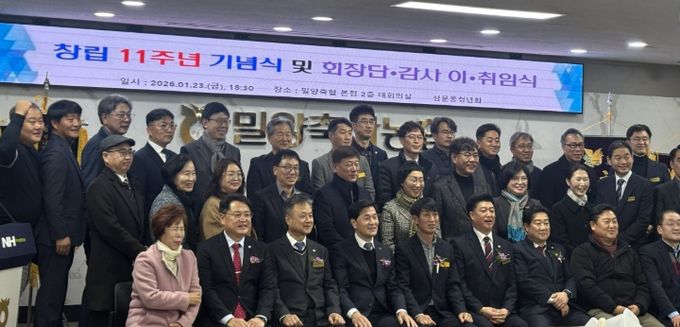 [참좋은뉴스= 기자] 밀양시 삼문동 청년회(회장 박진희)는 지난 23일 밀양축협 대회의실에서 창립 11주년 기념식 및 회장단 이·취임식을 개최했다.