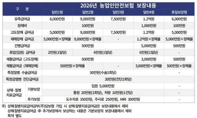 농업인안전보험은 영농에 종사하는 만 15~87세의 농업인과 농작업근로자를 대상으로 농작업 중 발생한 사고에 대해 유족급여금, 장례비, 간병급여금, 상해‧질병 치료급여금 등을 보상해 주는 보험으로, 농업인의 생활안전 도모 및 사회안전망 제공에 큰 도움을 주고 있다.