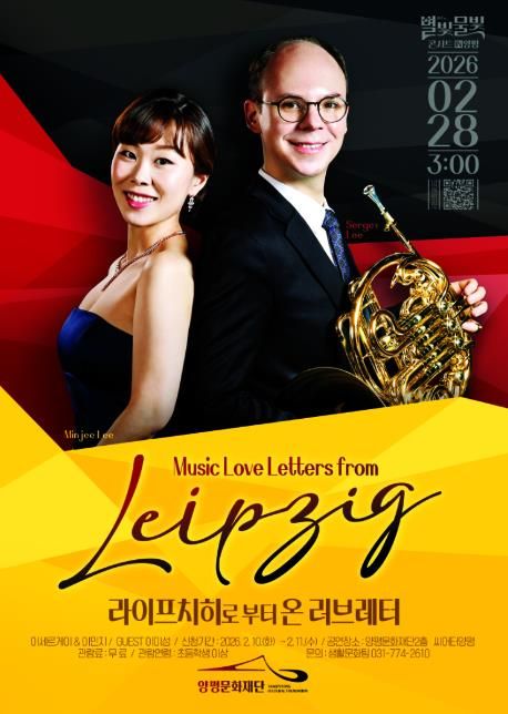 [참좋은뉴스= 기자] 양평문화재단은 오는 28일 오후 3시, 양평문화재단 2층 시어터양평에서 ‘별빛물빛 콘서트 in 양평’ 2월 정기공연으로 클래식 공연 《라이프치히로부터 온 러브레터(Music Love Letters from Leipzig)》를 선보인다.
