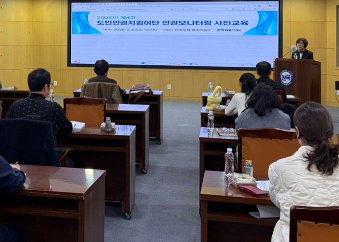 [참좋은뉴스= 기자] 전북특별자치도 인권담당관실은 6일 도청 중회의실에서 도민인권지킴이단 시·군 단장 14명을 대상으로 ‘인권모니터링 전문 강화 교육’을 실시했다.