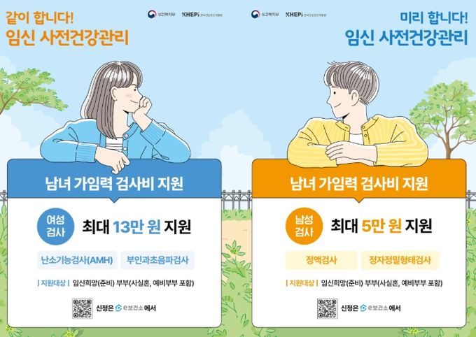 여성은 최대 13만 원, 남성은 최대 5만 원까지 검사비를 지원받을 수 있다.