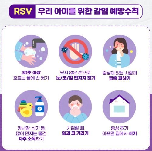 RSV 감염증은 기침이나 재채기 등 호흡기 비말과 오염된 손·물건을 통해 전파되는 급성 호흡기 감염병으로, 콧물과 기침, 가래 등의 증상이 나타난다.