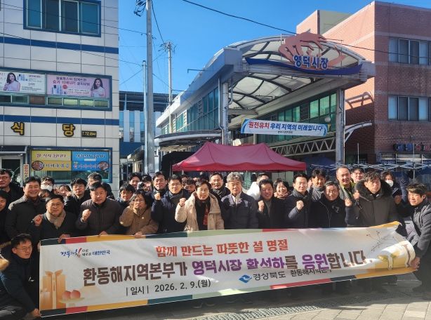 [참좋은뉴스= 기자] 경상북도 환동해지역본부는 2월 9일, 2021년 화재로 전소된 영덕전통시장의 재건축 완료 및 재개장을 기념해 설맞이 장보기를 실시했다. 이번 행사는 대형 화재로 삶의 터전을 잃었던 상인들을 위로하고, 새롭게 출발하는 영덕시장의 도약을 응원하기 위해 마련됐다.