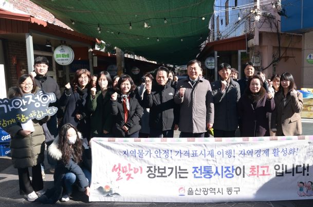 [참좋은뉴스= 기자] 울산 동구는 민족 대명절 설을 맞이하여 2월 9일 오전 11시 전하시장에서 공무원, 시장 상인회 등 30여 명과 함께 전통시장 이용 캠페인 및 전통시장 장보기 행사를 했다.