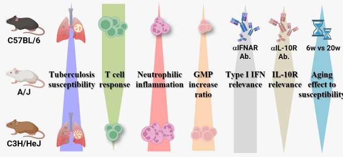 또한 마우스 모델별로 노화나 BCG 백신 접종이 GMP 확장 및 N/T 비율에 미치는 영향이 각기 다르게 나타남을 밝혀내어, 숙주의 유전적 배경에 따른 차별화된 보호 기전을 제시했다.