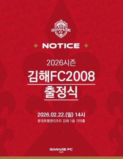 [참좋은뉴스= 기자] K리그2 무대에 첫 도전장을 내미는 김해FC2008(이하 김해FC)이 오는 22일 오후 2시, 롯데호텔앤리조트 김해에서 ‘2026시즌 출정식’을 개최한다.