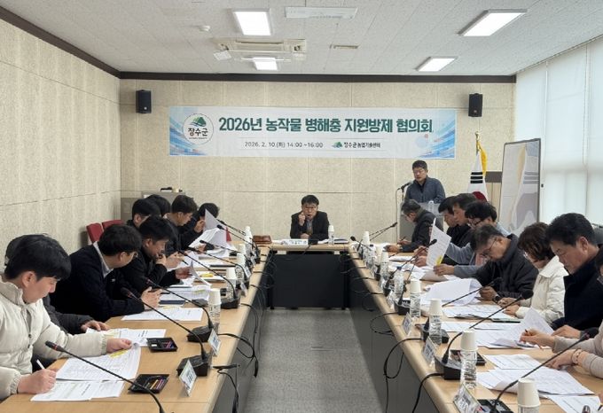 [참좋은뉴스= 기자] 장수군은 군 농업기술센터에서 농작물 병해충 선제적 대응을 위해 행정·농협·농업인단체 등 관계위원 17명이 참석한 가운데 ‘2026년 농작물 병해충 지원방제 협의회’를 개최했다고 13일 밝혔다.