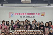 [참좋은뉴스= 기자] 수원시여성리더회가 5일 행궁동 어울림센터 공용주방에서 ‘장학기금 마련 젓갈 포장 행사’를 열었다. 김미애 수원시여성리더회 총회장과 이지영 수원시여성단체협의회 명예회장 등 회원 20여 명이 참여해 명란젓과 낙지젓 등 4종의 젓갈을 소포장해 판매했다. 수익금은 장학금으로 기부할 예정이다. 김미애 총회장은 “장학기금 마련에 동참해 주신 모든 분께 감사드린다”며 “이번 행사가 학생들의 미래를 응원하는, 작은 힘이 되길 바란다”고 말했다. ‘수원시 여성지도자대학’ 수료생으로 구성된 수원시여성리더회는 2004년 출범 이후 한부모가정 지원, 저소득 중·고등학생 장학금 후원, 복지관 중식 봉사, 소외계층 김장 봉사, 헌혈 캠페인 등 지역사회를 위한 나눔·봉사 활동을 꾸준히 하고 있다. [뉴스출처 : 경기도 수원시]
