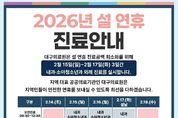 [참좋은뉴스= 기자] 대구의료원이 설 연휴 기간(2.14.~18.) 응급실 운영을 강화하고, 2월 15일~17일은 내과·소아청소년과 외래 진료를 실시한다. 2월 15일~17일 내과·소아청소년과 외래 진료 실시 대구의료원은 설 연휴를 대비해 2월 15일부터 17일까지 3일간 지역의 진료 공백 해소를 위해 내과·소아청소년과 전문의 외래 진료를 시행한다. 또한, 인근 약국 4개소와 협력해 설 연휴 기간 외래 진료 후에도 약을 처방받을 수 있도록 대비했다. 진료 시간은 평소와 같은 오전 8시 30분부터 오후 5시 30분까지이며 (점심시간 12:30~13:30) 모든 진료는 대구의료원 본관 1층으로 방문하면 된다. 설 연휴 응급실 24시간 운영 강화 대구의료원은 명절 기간 급증하는 응급환자에 적극 대처하고 연휴 기간 발생할 수 있는 응급상황 및 각종 사고에 적극 대처하기 위해 비상진료계획을 수립하고 응급실 의료 인력 및 필요 장비를 확충하여 진료에 차질이 없도록 철저히 대비한다. 또한 명절 기간 내원객들이 의료원을 이용함에 있어 불편을 최소화하기 위해 부서별 근무자