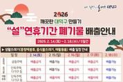 [참좋은뉴스= 기자] 대전 대덕구는 설 연휴 기간 구민과 귀성객이 쾌적한 명절을 보낼 수 있도록 ‘설 연휴 쓰레기 관리 대책’을 추진한다. 구는 오는 13일까지 동별 설맞이 대청소를 실시하고, 장기 적치된 생활폐기물을 수거해 쾌적한 생활환경을 조성할 계획이다. 또한 연휴 전 불법투기 단속반을 투입해 다중 이용 집합 장소와 상습 투기지역을 집중적으로 점검하고, 불법투기 예방 홍보를 병행할 예정이다. 연휴 기간인 14~18일에는 상황실과 특별 청소기동반을 운영해 쓰레기 관련 민원에 적극 대응할 예정이다. 다만, 14일, 16일, 17일에는 일반 쓰레기를 수거하지 않으며, 15~17일에는 대형폐기물 수거가 중단된다. 이에 따라 해당 기간에는 쓰레기 배출이 이뤄지지 않도록 구민들의 협조가 필요하다. 오는 19일부터는 평일과 동일하게 쓰레기 배출이 가능하다. 한편, 구는 설 연휴 생활 쓰레기 수거 일정을 대덕구 누리집, 카드뉴스, 네이버 블로그․밴드 등을 활용해 사전 홍보하며 각 가정에서 쓰레기 배출로 인한 불편이 발생하지 않도록 안내에 나서고 있다. 대덕구 관계자는