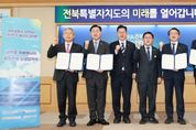 [참좋은뉴스= 기자] 전북특별자치도가 9일 도청에서 새만금개발청, 한국전력공사, 한국수력원자력㈜와 함께 '새만금 수상태양광(1단계) 발전사업'의 적기 구축을 위한 상호 협력 업무협약(MOU)을 체결했다. 협약식에는 김관영 전북자치도지사와 김성환 기후에너지환경부 장관, 안호영 기후에너지환경노동위원회 위원장, 김의겸 새만금개발청장, 김동철 한국전력공사 사장, 전대욱 한국수력원자력㈜ 사장 직무대행이 참석했다. 새만금 수상태양광 1단계 사업은 약 13.5㎢ 수역에 1.2GW 규모의 태양광 발전시설을 설치하는 총사업비 3조 원 규모의 대형 프로젝트다. 완공 시 연간 약 1,700GWh의 친환경 전력을 생산할 수 있으며, 이는 약 35만 가구가 1년간 사용할 수 있는 전력량에 해당한다. 이번 협약은 새만금 지역의 대규모 재생에너지 사업인 수상태양광(1단계) 발전사업을 차질 없이 추진하고, 조속한 계통 연계를 통해 새만금의 풍부한 재생에너지를 RE100 산업단지에 안정적으로 공급하기 위한 전력설비를 조기에 구축하는 데 목적이 있다. 협력을 통해 한전의 전력 인프라가 조기에 구축되면, 새만금 재생에너지의 적기
