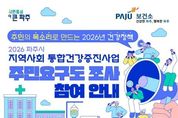 [참좋은뉴스= 기자] 파주시는 시민의 건강한 삶을 지원하기 위해 '2026년 지역사회 통합건강증진사업’추진에 앞서 주민건강요구도 조사를 실시한다. 조사는 오는 25일까지 진행되며, 파주시에 거주하는 시민이라면 누구나 참여할 수 있다. 조사 문항은 총 29개로, ▲일반적 특성 ▲건강문제 및 건강검진 ▲건강행태 ▲건강증진사업 요구도 등으로 구성됐다. 이를 통해 주민의 건강 인식과 필요 사항을 폭넓게 파악하고, 시민의 의견을 수렴해 건강정책에 반영할 방침이다. 조사에 참여하려면 홍보 안내문에 있는 정보 무늬(QR코드)를 통해 온라인 접속하거나 파주시 누리집을 접속하면 된다. 또한 보건소·보건지소·보건진료소 등 보건의료기관과 읍면동 행정복지센터에 비치된 설문지를 통해서도 참여할 수 있어, 스마트폰 이용이 어려운 시민도 편리하게 의견을 제시할 수 있다. 응답 내용 중 개인정보는 수집하지 않으며, 조사 결과는 2026년 지역사회 통합건강증진사업의 세부 사업 기획과 우선순위 설정에 적극 활용될 예정이다. 이한상 파주보건소장은 “이번 주민건강요구도 조사는 시민이 직접 건강정책의 방향을 제안하는 과정