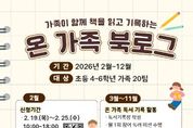 [참좋은뉴스= 기자] 부산광역시립해운대도서관(관장 노장석)은 2월부터 12월까지 초등학교 4~6학년 자녀를 둔 가족 20팀을 대상으로 가족 독서 기록 ‘온 가족 북로그’를 운영한다. 프로그램은 해운대도서관 2026년 특색사업 ‘책놀이 프로젝트’의 하나로, 가족이 함께 책을 읽고 기록하며 소통하는 독서문화를 확산하고 학생 문해력 향상을 지원하기 위해 마련했다. 참여 가족은 독서기록장 작성과 월 1회 독서꾸러미 제공을 통해 꾸준한 독서·기록 활동을 이어가게 된다. 또, 9월 작가와의 만남, 11월 북콘서트 및 성과 공유회를 통해 가족 독서 기록 활동의 경험을 나누는 자리를 마련할 계획이다. 참가 신청은 오는 19일부터 25일까지 부산교육청 통합예약포털에서 선착순으로 접수한다. 노장석 해운대도서관장은 “온 가족 북로그가 가족이 함께 읽고 소통하며 성장하는 계기가 되고, 읽기·쓰기 중심의 문해력 향상으로 이어지길 기대한다”라고 말했다. [뉴스출처 : 해운대도서관]