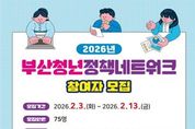 [참좋은뉴스= 기자] 부산시는 청년의 시정 참여 확대와 청년 주도의 정책 형성을 위해 '2026년 부산청년정책네트워크에 참여할 청년 75명을 오늘(3일)부터 2월 13일까지 공개 모집한다고 밝혔다. ‘청정넷’은 청년들이 시와 소통하며 정책 의제를 직접 발굴·제안하고, 청년정책을 홍보하는 청년 참여형 정책 협의체(거버넌스)다. ‘청정넷’은 그간 청년의 시각에서 다양한 정책 제안을 도출하고, 청년의 시정참여 경험을 축적함으로써 청년 삶의 질 향상과 정책 실효성 제고에 기여해왔다. 부산에 거주하거나 부산에서 활동하는 18~39세 청년이라면 누구나 '청정넷' 참여를 신청할 수 있다. 선발된 참가자들은 올해 12월까지 ▲일자리 ▲주거 ▲문화·예술 ▲관광 ▲정책홍보 등 총 5개 분과에서 신규 정책 제안과 기존 정책 개선방안 도출 활동을 수행한다. 청년들은 3월 오리엔테이션을 시작으로 시정참여 교육, 정책 워크숍, 청년정책 간담회, 현장방문, 교류(네트워킹) 데이 등 다양한 프로그램에 참여한다. 9월에는 정책제안회를 통해 분과별로 도출한 정책을 시에 공식 제안할 예정이다.