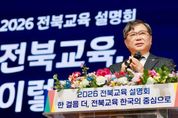 [참좋은뉴스= 기자] 전북특별자치도교육청은 9일 전주학생교육문화관에서 ‘2026년 전북교육 설명회’를 개최했다. 도내 유·초·중·고등학교 교(원)장과 교직원 등 1,000여 명이 참여한 설명회는 ‘2026. 전북교육, 이렇게 달라집니다!’를 주제로 2026년 핵심과제와 주요 정책 방향을 안내하는 자리로 마련됐다. 먼저 유정기 교육감 권한대행이 지난해 전북교육 성과와 정책 방향을 직접 설명했다. 전북교육청은 올해 10대 핵심과제로 학력신장 분야는 △독서·인문교육 △수업혁신 △교과학습 강화 △AI 교육 △특성화고 취업 △교육활동 보호를, 책임교육 분야는 △민주·생태·역사교육 △학생 마음건강 지원 △다문화교육 △유아 발달·방과후 지원을 추진한다. 이날 유 권한대행은 10대 핵심과제 가운데 △AI 교육 △민주·생태·역사교육 △학생 마음건강 지원 등 3가지를 올해 전북교육이 반드시 책임져야 할 새로운 핵심과제로 제시했다. 유 권한대행은 “3년 연속 전국 최우수교육청 선정과 7년 만의 종합청렴도 2등급 회복은 학교 현장의 교장·원장 선생님을 비롯한 구성원 한 사람 한 사람의 헌신과 책임감이 있어