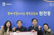 [참좋은뉴스= 기자] 지난 17일 경기중앙지방법무사회 수원지부는 원천동 저소득 지역주민들을 돕기 위해 성금 100만 원을 원천동행정복지센터(동장 김선혁)에 후원했다. 이번에 전달된 성금은 경제적 어려움을 겪고 있는 원천동 저소득 지역주민들을 위해 사용될 예정으로, 지역사회 나눔 문화 확산에 기여할 것으로 기대된다. 경기중앙지방법무사회 수원지부 관계자는 “작은 정성이지만 지역 내 어려운 이웃들에게 도움이 되길 바란다”며 “앞으로도 지역사회와 함께하는 다양한 나눔 활동을 지속해 나가겠다”고 밝혔다. 김선혁 원천동장은 “어려운 이웃을 위한 따뜻한 나눔에 깊이 감사드린다”며 “후원금은 도움이 꼭 필요한 저소득 주민들을 위해 소중히 사용하겠다”고 전했다. 한편, 경기중앙지방법무사회 수원지부는 매년 꾸준히 성금을 전달하여 지역사회 복지 증진을 위해 힘쓰고 있다. [뉴스출처 : 경기도 수원시]