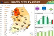 [참좋은뉴스= 기자] 국토교통부와 한국부동산원(원장 손태락)은 '25년 연간 지가변동률 및 토지거래량을 발표했다. ◆ 지가변동률 '25년 연간 전국 지가는 2.25% 상승했다. 상승폭은 '24년(2.15%) 대비 0.10%p 확대, '23년(0.82%) 대비 1.43%p 확대된 것으로 나타났다. '25년 4분기 지가변동률은 0.61%로, 3분기(0.58%) 대비 0.03%p, '24년 4분기(0.56%) 대비 0.05%p 높은 수준으로 나타났다. (지역별) '25년 지가변동률은 수도권(2.77% → 3.08%)은 '24년 변동률 대비 높은 수준, 지방권(1.10% → 0.82%)은 낮은 수준을 보였다. (시·도) 서울(4.02%), 경기(2.32%) 2개 시도가 전국 평균(2.25%)을 상회했다. (시·군·구) 서울 강남구 6.18%, 서울 용산구 6.15%, 서울 서초구 5.19% 등 252개 시군구 중 44개 시군구가 전국 평균을 상회했다. 또한, 252개 시군구 중 200개 시군구가 0.00% ~ 2.40% 변동률을 보인 가운데, 수도권이 지방보다 높은